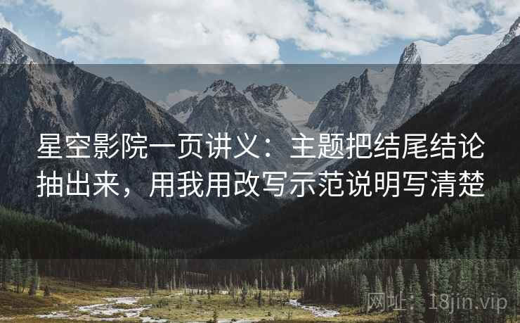 你是否曾有过这样的困扰:辛辛苦苦准备了一场演讲或一份报告,内容充实,逻辑严谨,但到了结尾,却发现它平淡无奇,甚至有些仓促,无法真正将你的核心思想传递出去?今天,我们就来聊聊如何在“星空影院”的语境下,抓住结尾的精髓,让你的结论产生“一页纸”般的概括力和传播力。